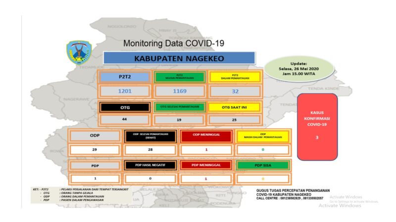 Ia mengatakan hingga saat ini pasien positif di Kabupaten Nagekeo bertambah 2 orang sesuai data Senin 25/5/2020. Dengan tambahan data itu kata Dia saat ini total pasien menjadi 3 pasien terkonfirmasi positif Covid-19.