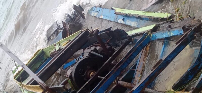 Dan berdasarkan data yang kami peroleh, jelas kades Agus, ada 5 KK yang terkena dampak bencana tersebut, 1 KK rumahnya rusak parah, sedangkan 3 KK lainnya, perahu motor hancur, sedangkan 1 KK sampan hancur dihantam ombak.