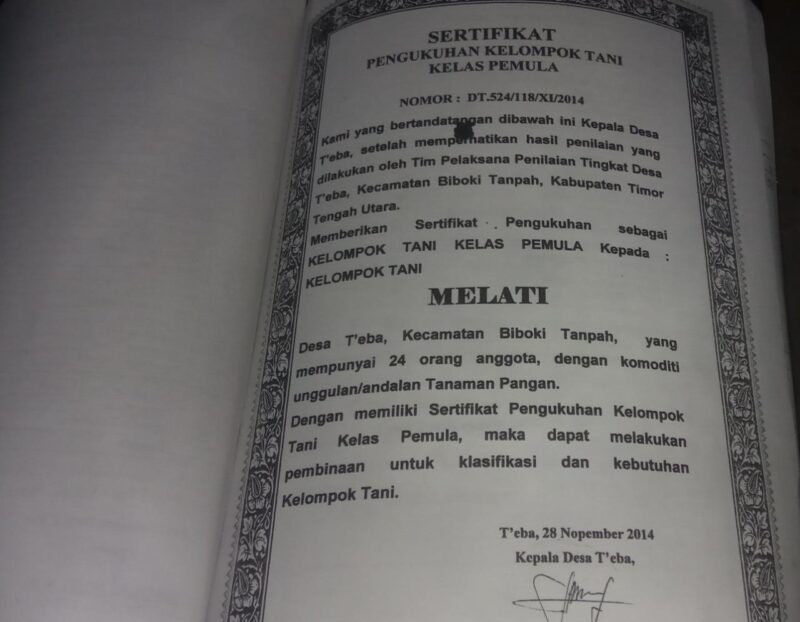 “Terkait dengan aset itu anggota kelompok sudah pernah mengadu ke kami Pemerintah Desa, karena memang sudah tidak berada di Desa T’eba . Aset tersebut juga dibawa ke Nifunenas tanpa ketahuan Pemerintah Desa setempat yang adalah naungannya kelompok Tani tersebut, ” Jelas Agustinus.