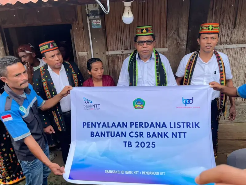 Borong, Savanaparadise.com,- Bank Nusa Tenggara Timur (Bank NTT) melalui program Corporate Social Responsibility (CSR) memasang sambungan listrik baru secara gratis pada 142 rumah tangga di Kabupaten Manggarai Timur (Matim). Penyalaan perdana dilakukan secara simbolis oleh Bupati Manggarai Timur, Agas Andreas, di Kampung Nteweng, Desa Leong, Kecamatan Lamba Leda Selatan, Sabtu (10/1/2026).