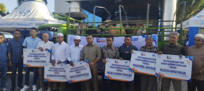 Kupang, Savanaparadise.com,-Menyambut Perayaan Hari Idul Kurban yang jatuh pada tanggal 17 Juni 2024, Bank NTT menyerahkan sejumlah hewan kurban kepada beberapa masjid di Kota Kupang dan Kabupaten Kupang. Total hewan kurban yang diserahkan berjumlah 6 ekor untuk 6 Masjid.