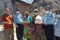 Kepala Divisi Pemasyarakatan Kanwil Kemenkumham NTT, Mulyadi, Bc. IP. SH. M.Si di dampingi Staf dan Kepala desa Napan Saat menyerahkan Bantuan Sembako bagi warga…