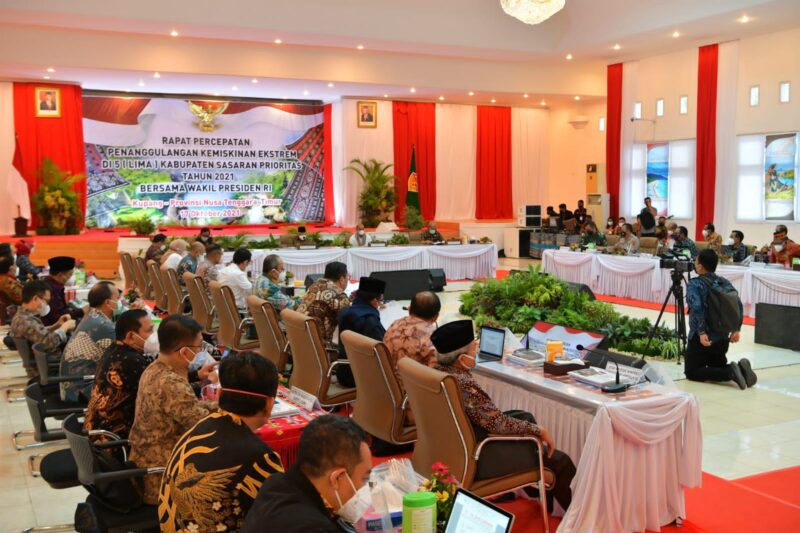 Dalam kunjungan kerjanya di NTT, Wakil Presiden RI K.H Ma’ruf Amin menggelar Rapat Koordinasi Penanggulangan Kemiskinan Ekstrem tahun 2021 di Provinsi NTT bersama Gubernur dan Wakil Gubernur, yang berlangsung di Rujab Gubernur, Minggu (17/10/21).