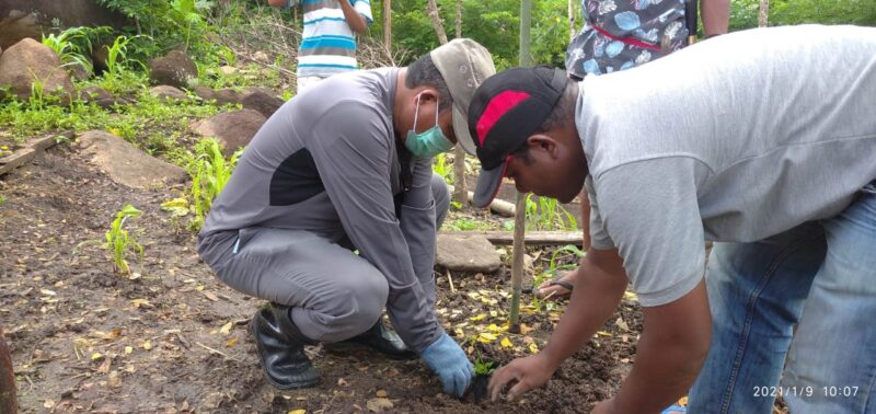 Usai penanaman sorgum di Desa Pagomogo, Bupati dan rombongan melakukan penanam cendana di lokasi Kantor Desa Persiapan Pigapora dan penanaman sorgum dan ubi cimanggu di Desa Ulupulu I. (FR03)