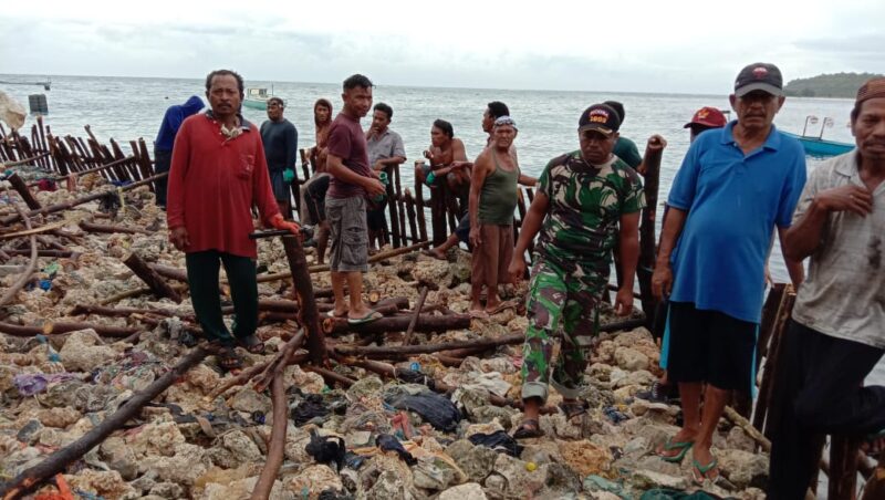 Maumere, Savanaparadise.com,– Camat Alok Pedro Redriques, bersama Jajaran Aparat Desa Pemana, Babinsa, dan Kapospol Pemana serta Warga Masyarakat Desa Pemana bergotong royong memperbaiki tanggul penahan ombak yang rusak pasca ROB. Tanggul penahan ombak itu diperbaiki oleh Pemerintah Kecamatan, Babinsa dan Kapospol, serta warga Pemana sejak, Sabtu, 03 April 2021 dan dilanjutkan sampai hari ini, Senin, (05/4/21).