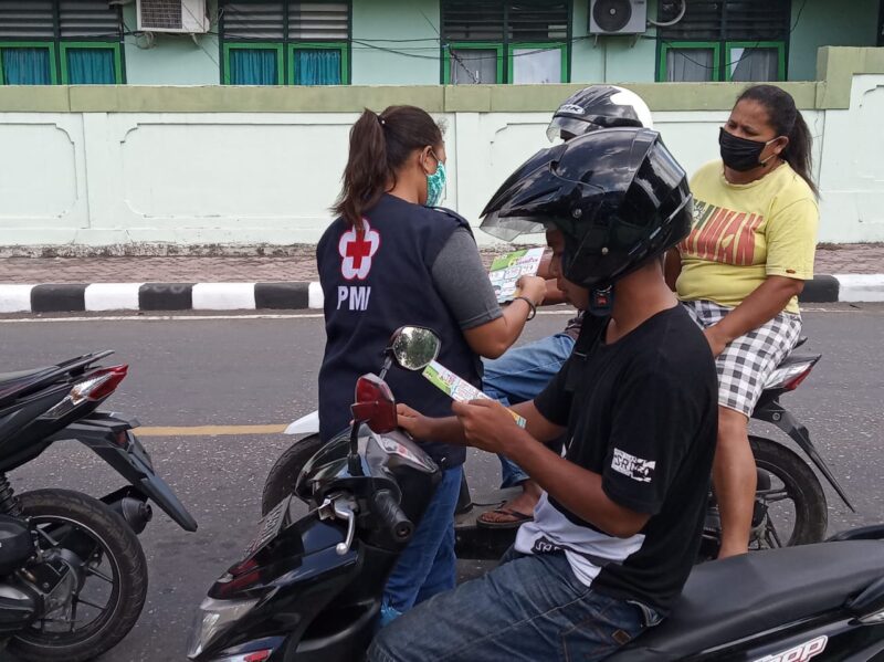 Ende, Savanaparadise.com,- Palang Merah Indonesia (PMI) Kabupaten Ende membagikan leaflet kepada warga diseputaran Jl. Sukarno, Jl. Pahlawan, Jl. Mahoni, Jl Katedral.