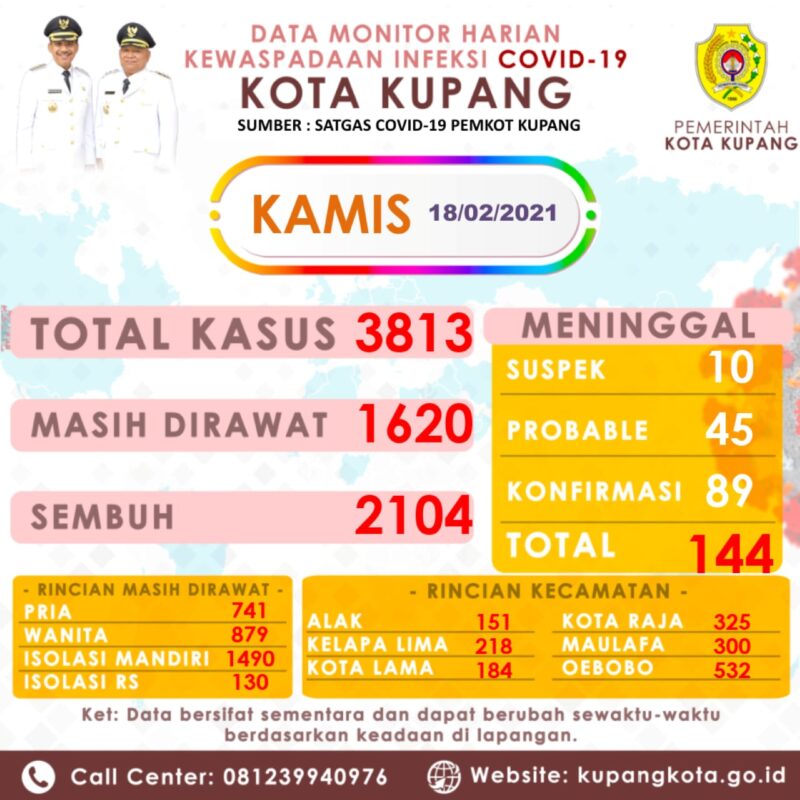 Kupang, Savanaparadise.com,- Update data monitor pada hari Kamis, 18 Februari 2021.