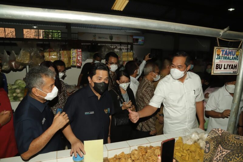 “Dengan segala kerendahan hati, kita berharap para pedagang yang ada di pasar juga bekerjasama dengan Himbara, salah satunya BRI. supaya bisa pendanaan murah dan BRI juga sedang membangun yang namanya ekosistem pasar online agar apa barang-barang bapak yang jual yang Ibu jual dapat langsung terkoneksi kepada pembeli di mana saja. Kami di BUMN insya Allah terus mendampingi,” tambah Erick.