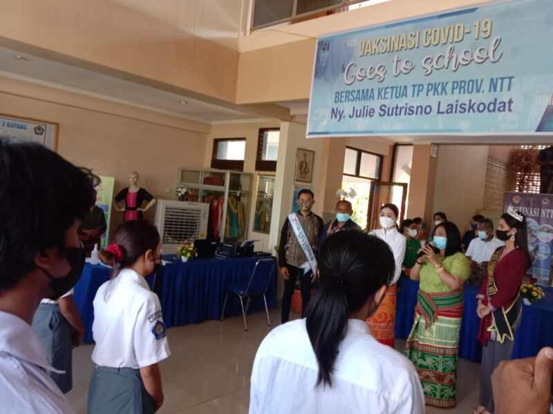 Kupang, Savanaparadise.com,– Gandeng Sekolah Menengah Kejuruan (SMK) Negeri 3 Kupang, Tim Penggerak Pemberdayaan Kesejahteraan Keluarga (TP-PKK) Provinsi Nusa Tenggara Timur (NTT) melaunching vaksinasi covid-19 Goes To School.
