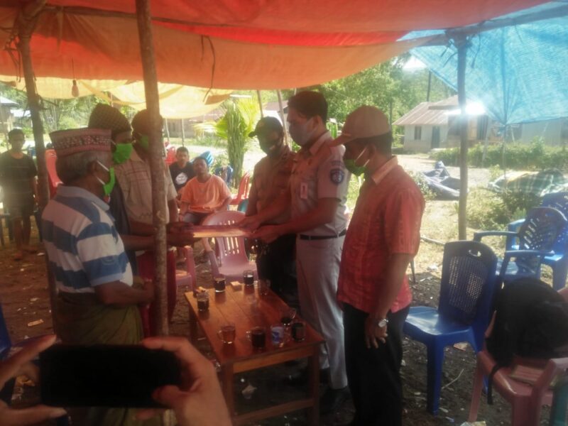 Pada kesempatan itu dilakukan penyerahan santunan meninggal dunia dilakukan secara simbolis kepada orang tua almarhum yakni Leonardus Semele sebesar Rp.50 juta rupiah.