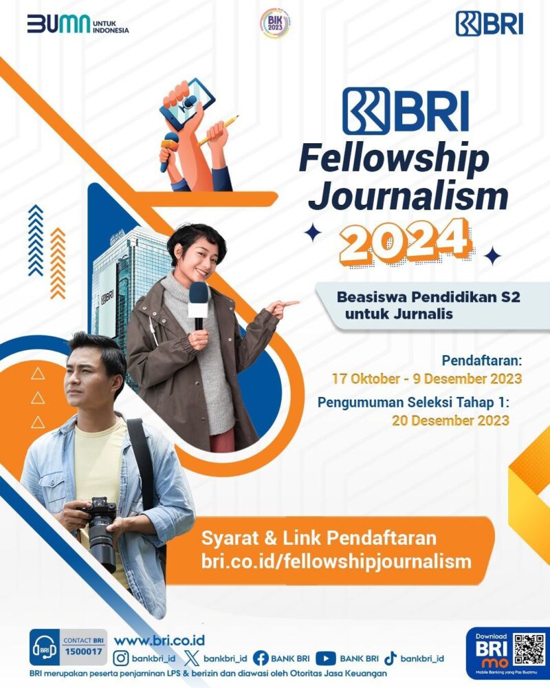 Tak hanya itu, kompetisi ini juga menjadi gerbang awal bagi para jurnalis untuk mengikuti BRI Fellowship Journalism 2024 yang dibuka pada periode yang sama (17 Oktober s.d 9 Desember 2023). Program tahunan BRI dalam rangka memberi kesempatan para jurnalis mengemban pendidikan pada jenjang lebih tinggi (S2) ini hanya dapat menerima setiap karya yang telah didaftarkan di BRI Write Fest.
