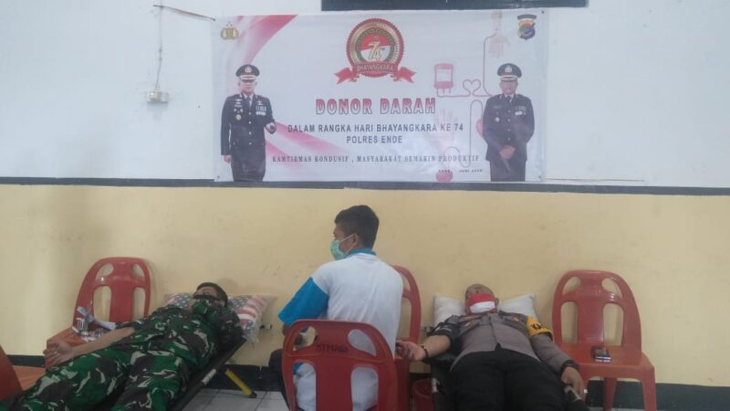 Ende, Savanaparadise.com,- Kepolisian Resort (Polres) Ende dan Komando Distrik Militer (Kodim) Ende menggelar kegiatan donor dalam rangka Hari Ulang Tahun (HUT) Bhayakara Ke-74.