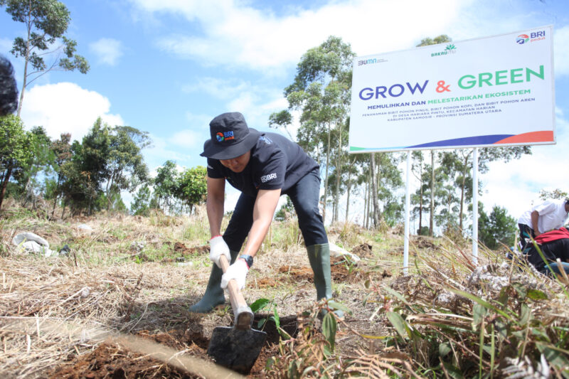 Setelah sukses tanam 10.000 bibit Mangrove di di Kecamatan Muaragembong Kabupaten Bekasi, penanaman 2.500 bibit durian di Berau, Kalimantan Timur dan penanaman 500 tanaman Mangrove di Kelurahan Pulau Tidung, Kab. Kepulauan Seribu, program BRI Grow & Green hadir di Kabupaten Samosir, Sumatera Utara melalui penanaman 2.500 bibit pohon yang terdiri dari bibit kopi, pinus dan aren.