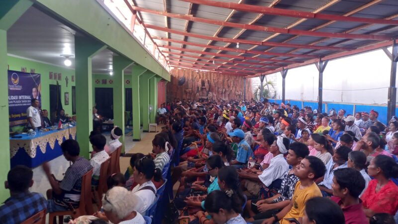 Hari kedua menyasar pulau Sumba, SPK bersama Ketua Teritori Pemenangan Pemilu Partai Nasdem wilayah Nusa Tenggara Timur Julie Sutrisno Laiskodat, melakukan tatap muka dengan ribuan kader Nasdem di We’ekrou, Kecamatan Kota Waikabubak, Kabupaten Sumba Barat.
