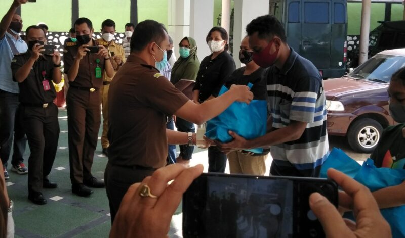 Pembagian sembako dilakukan di halaman Kantor Kejaksaan Negeri, Selasa (13/7/21), yang disaksikan langsung oleh Camat Ende Tengah, Herman Yosef Fabianus Teku dan Camat Ende Selatan, Gadir Haji Ibrahim Dean.