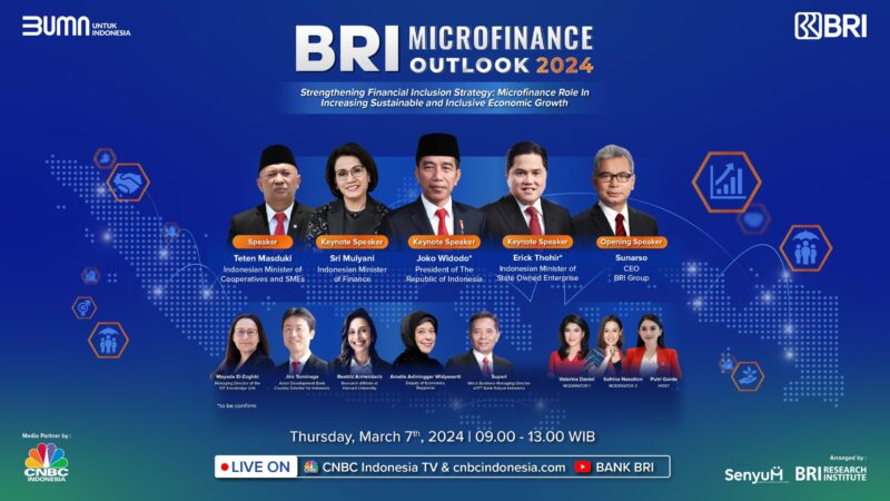 Jakarta, Savanaparadise.com,-  PT. Bank Rakyat Indonesia (Persero) Tbk kembali menyelenggarakan BRI Microfinance Outlook 2024 yang akan berlangsung 7 Maret 2024 mendatang. BRI Microfinance Outlook kali ini membahas strategi untuk mendukung pertumbuhan ekonomi yang inklusif dan berkelanjutan, dengan mengoptimalkan peran UMKM sebagai driver pertumbuhan ekonomi, sehingga dapat mengurangi ketimpangan pendapatan dan mendorong pemerataan pertumbuhan ekonomi.