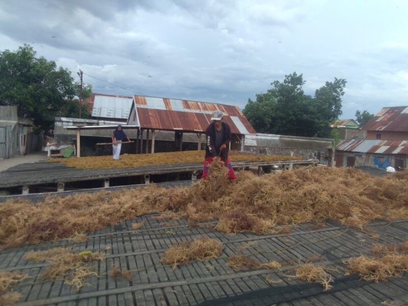 “Untuk penghasilan setiap bulannya tergantung cuaca. kalau cuaca bagus dan normal, dalam 100 bentangan itu bisa mencapai 400kg. Tapi kalau cuaca seperti sekarang ini mulai panas, kondisi rumput laut jadi agak kuning. Kalau warnanya kuning itu berarti pertumbuhannya agak lambat. Kalau banjir, dia juga rusak. Jadi tantangan usaha ini semuanya tergantung cuaca. Kalau harga jualnya sendiri rata-rata Rp16 ribu per kilogram, tapi harganya sendiri naik turun,” cerita Sudirman lagi.
