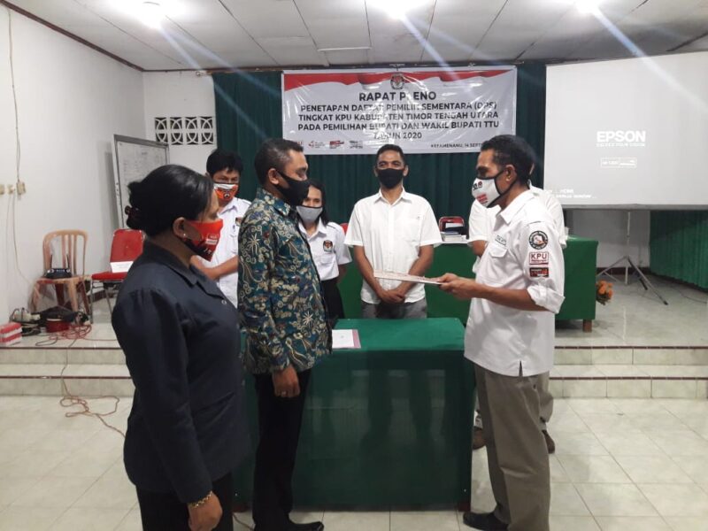 Ketua KPU kabupaten TTU Paulinus Lape Feka, S.Pd mengatakan pihaknya telah melakukan rapat pleno terbuka dan telah menetapkan Daftar Pemilih Sementara (DPS) sebanyak 173.429 pemilih yang terdiri dari 85.861 pemilih laki-laki dan 87.568 pemilih perempuan.