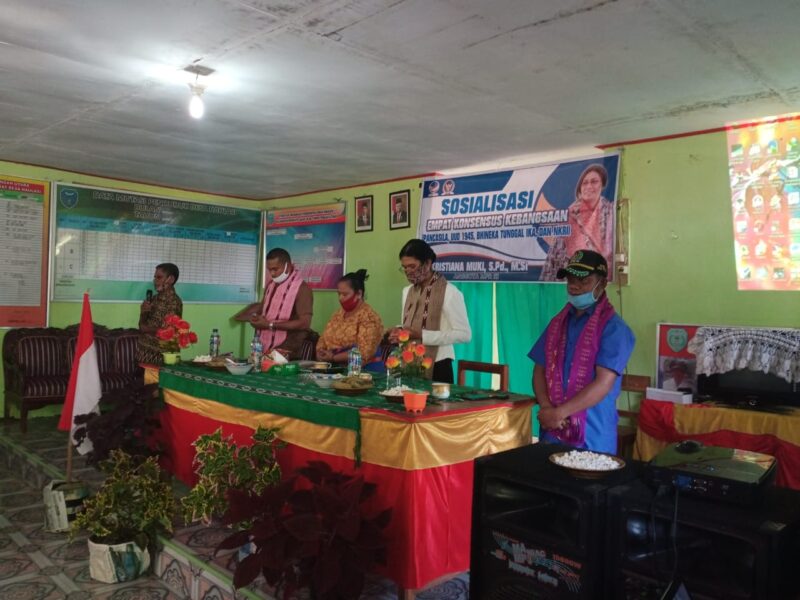 Kefamenanu, Savanaparadise.com,- Anggota MPR/DPR RI Kristiana Muki melakukan sosialisasi tentang 4 konsensus Kebangsaan di Desa Haulasi, Kecamatan Miomaffo Barat Kabupaten Timor Tengah Utara, Jumad, 26/06/2020. Hadir pada kesempatan itu ratusan masyarakat desa Haulasi dan perangkat desa. Turut mendampingi anggota DPRD TTU Fraksi Nasdem, Paulinus Efi dan Oktofianus Sasi.