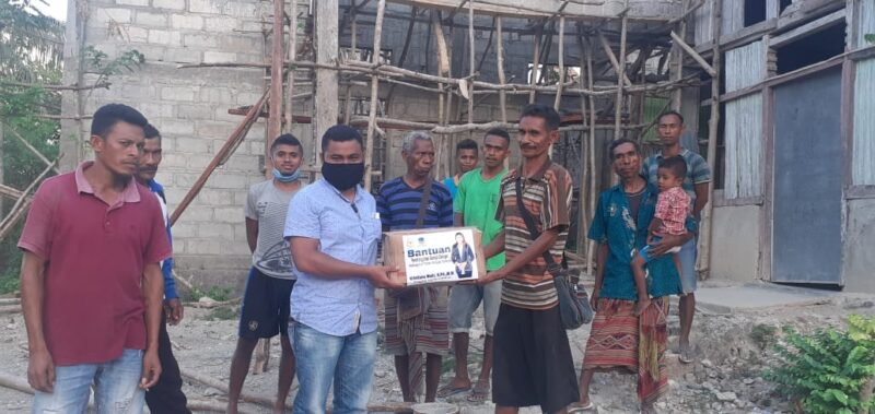 Bantuan yang diserahkan oleh Ibu Kristiana Muki diterima secara langsung oleh pendeta jemaat Horeb desa Fatukopa, Samuel Kase, S.Th dan penanggung jawab pembangunan gereja Filipus Beti. (YA)