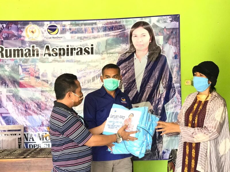 Kefamenanu, Savanaparadise.com,- Anggota Komisi II DPR RI dari Fraksi NasDem,Kristiana Muki menyerahkan Alat Pelindung Diri (APD) untuk Dinas Kesehatan Kabupaten TTU. APD tersebut juga diserahkan untuk beberapa Puskesmas di TTU yang berada di titik-titik pelintasan.