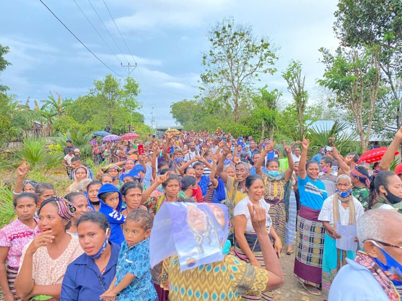 Kefamenanu, Savanaparadise.com,- Lautan manusia tumpah ruah menyambut paket Kita Sehati (Kristiana Muki-Yosef Tanu) ketika melakukan kampanye di desa Nansean Timur, kecamatan Insana, Sabtu (05/12/2020) sore. Lautan massa yang menyemut ini setia menunggu sejak pagi hari karena Kita Sehati masih melakukan kampanye di 3 titik yaitu 2 titik di desa Sekon dan 1 titik di desa Susulaku A. ditiga titik ini paket Kita Sehati disambut antusias oleh ratusan warga setempat.