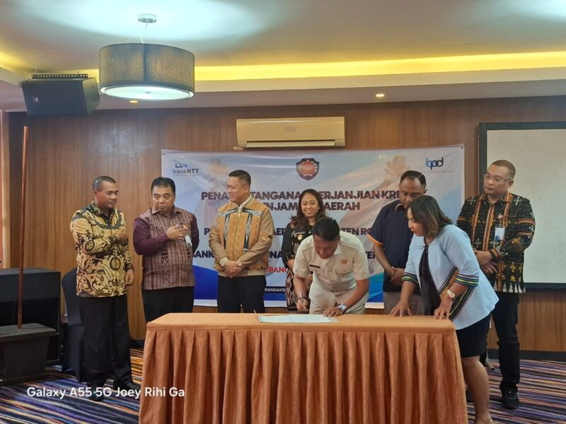 Penandatanganan berlangsung di Hotel Sotis Kupang, Jumat (27/2/2026), dihadiri Bupati Rote Ndao Paulus Henuk, Wakil Bupati Apremoi Dethan, Sekda Jonas Selly, Komisaris Utama Bank NTT Donny Heatubun, Direktur Kredit Aloysius Geong, serta Direktur Dana dan Treasury Heri Helbianto.