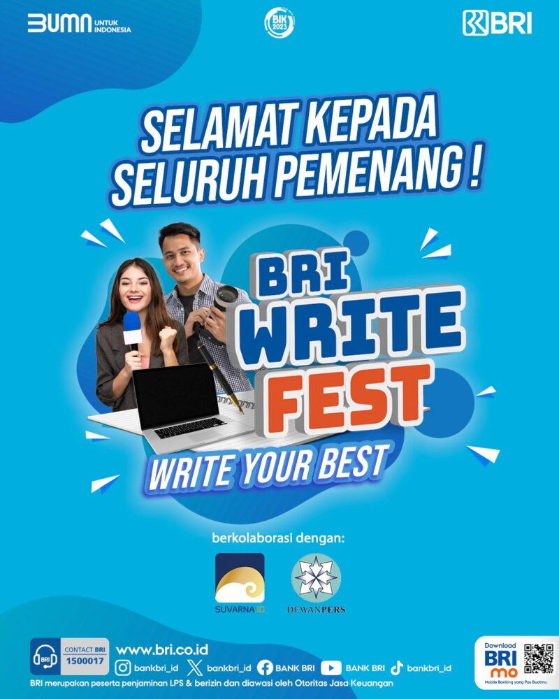 Pengumuman pemenang juga bisa dilihat di website resmi BRI www.bri.co.id/briwritefest dan instagram resmi BRI.(SP)