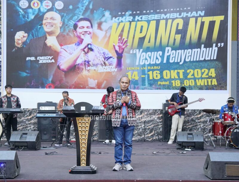 Kupang,Savanaparadise.com-Penjabat Wali Kota Kupang, Linus Lusi, S.Pd., M.Pd., membuka kegiatan Kebaktian Kebangunan Rohani (KKR) Mujizat Kesembuhan yang digelar oleh Gereja Mawar Sharon, Senin (14/10). KKR Oikumene dengan tema “Yesus Penyembuh” itu akan berlangsung pada 14-16 Oktober 2024 di Aula El Tari Kupang dengan menghadirkan Pastor Dedy Zega Dan Pastor Andy Simon. Hadir dalam acara tersebut perwakilan dari Forkopimda Tingkat Provinsi NTT dan Kota Kupang, para gembala jemaat GBI se-Kota Kupang serta sejumlah besar warga Kota Kupang.