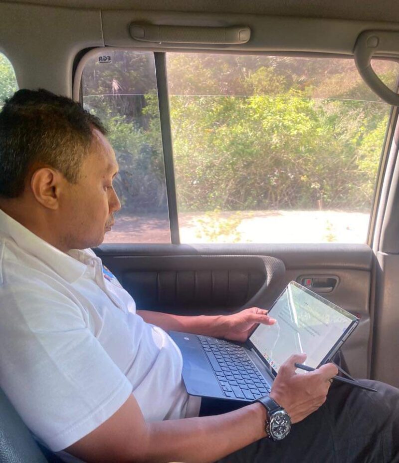 “Perjalananan kampanye dan blusukan Tim SIAGA kemarin yang dimulai dari Belu, Malaka dan TTS, di mana aku ikut serta mendampingi suamiku. Aku kembali melihat pemandangan suami SPK (Simon Petrus Kamlasi) di depan Tab-nya, tengah belajar keras di mobil, di sela-sela perjalanan kami dengan medan jalan yang kurang bagus,” demikian isi tulisan Esther Kamlasi Siregar.