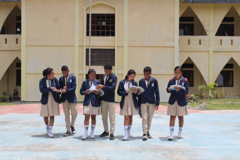 “Inikan Sekolah Menengah Agama Katolik Negeri, sebelumnya memang swasta tapi pendiri atau penyelenggara berusaha berjuang bersama Bimas Katolik Pusat agar sekolah ini di Negerikan”, kisah Kepsek Sony