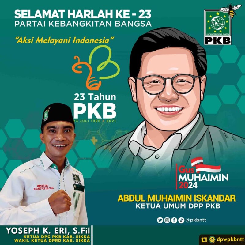 Maumere, Savanaparadise.com,- Partai Kebangkitan Bangsa (PKB) akan memperingati kembali HUT yang ke 23 jatuh pada tanggal 23 Juli 2021.