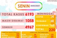 Kupang, Savanaparadise.com,– Update data monitor pada hari Senin, 29 Maret 2021. Disampaikan kepada Masyarakat Kota Kupang, bahwa, total kasus positif corana sebanyak 6.193 Orang,…