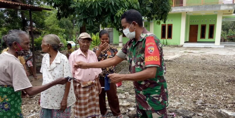 Kupang, Savanaparadise.com,- Guna meningkatkan kesadaran masyarakat akan protokol kesehatan, Babinsa bagikan masker kepada Lansia. Bagi masker kepada Lansia dilakukan Babinsa dalam rangka memutus rantai penyebaran covid-19.