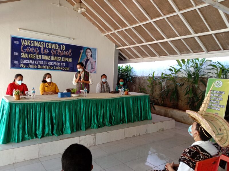 Setelah beberapa Sekolah Menengah Atas dan Kejuaruan, TP PKK NTT melakukan Vaksinasi di SMA Kristen Tunas Bangsa, Selasa, 14/09/2021. Hadir pada kesempatan itu Wakil Ketua TP PKK NTT, Maria Fransiska Djogo dan para ketua Pokja.