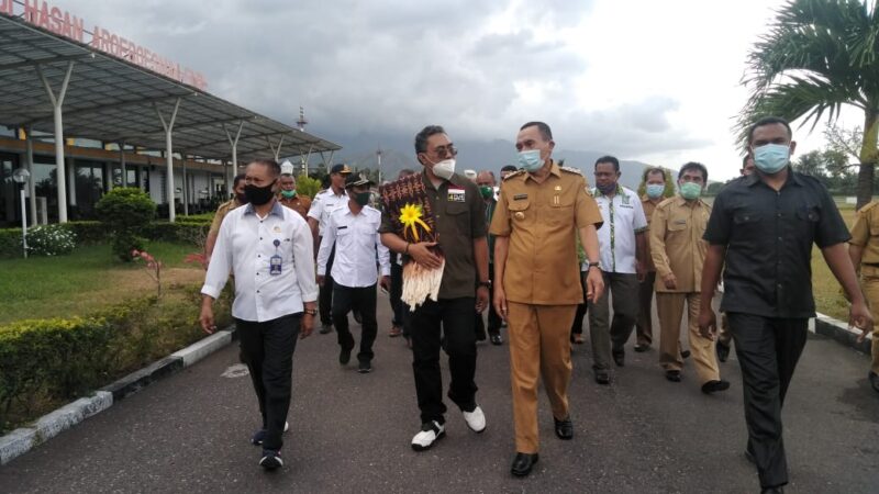 Rombongan Wakil Ketua MPR disambut oleh Bupati Ende, Djafar Ahmad di Bandar Udara Haji Hasan Aroeboesman , pada selasa, 28 Juli 2020.